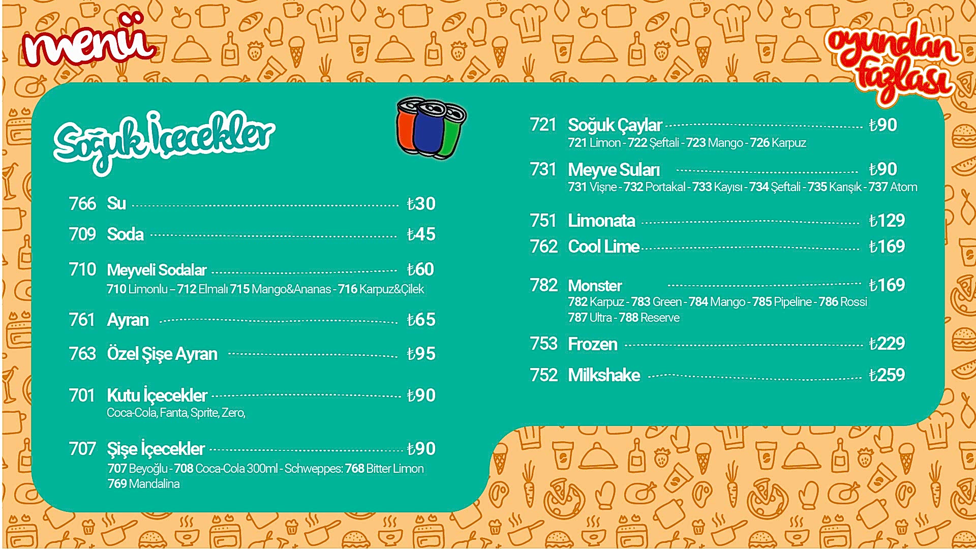 707 Beyoğlu - 708 Coca-Cola 300ml - Schweppes: 768 Bitter Limon - 769 Mandalina